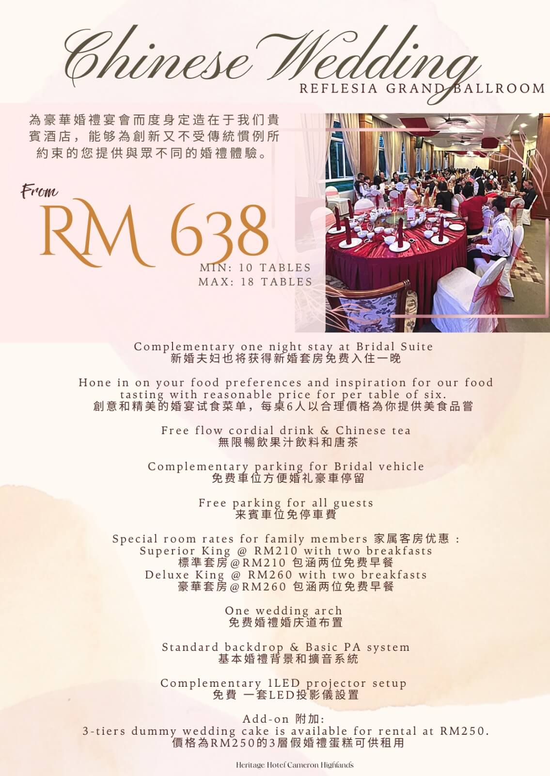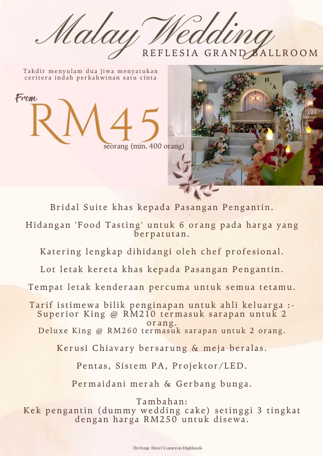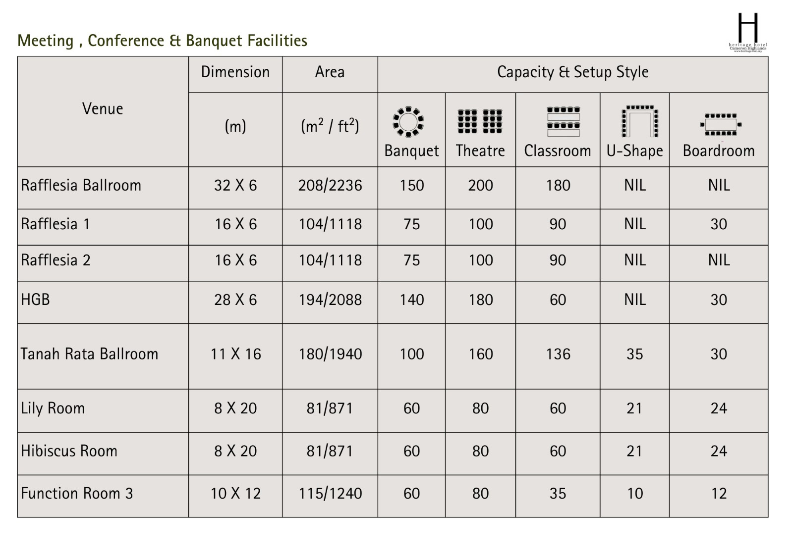 Heritage Hotel Cameron Highlands caters to your business needs with a collection of sophisticated meeting and conference venues, offering a range of possibilities for gatherings of all sizes. From intimate meetings of 10 to grand conferences for up to 300 guests, our six versatile spaces can be configured to seamlessly accommodate your vision.